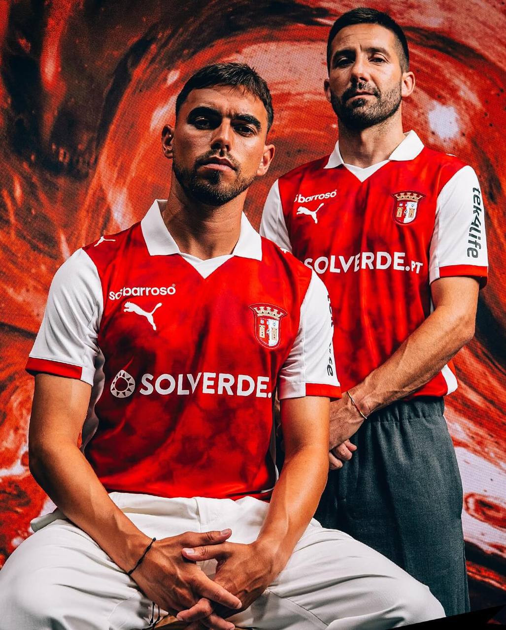 A Camisa Sporting Braga I 2025/26, chega com um visual clássico repaginado para os torcedores minhotos. O modelo mantém a tradicional combinação vermelho e branco, agora com um efeito texturizado no corpo, que dá mais profundidade e modernidade ao manto. As mangas e laterais em branco realçam o contraste, enquanto a gola polo branca com detalhe vermelho adiciona um toque elegante.